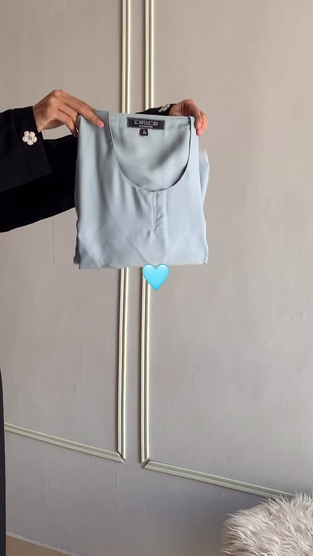 Designed with wide sleeves and a breathable finish, it’s ideal for both casual outings and refined gatherings. Paired with its matching sheila, this abaya embodies understated elegance in the most modern way