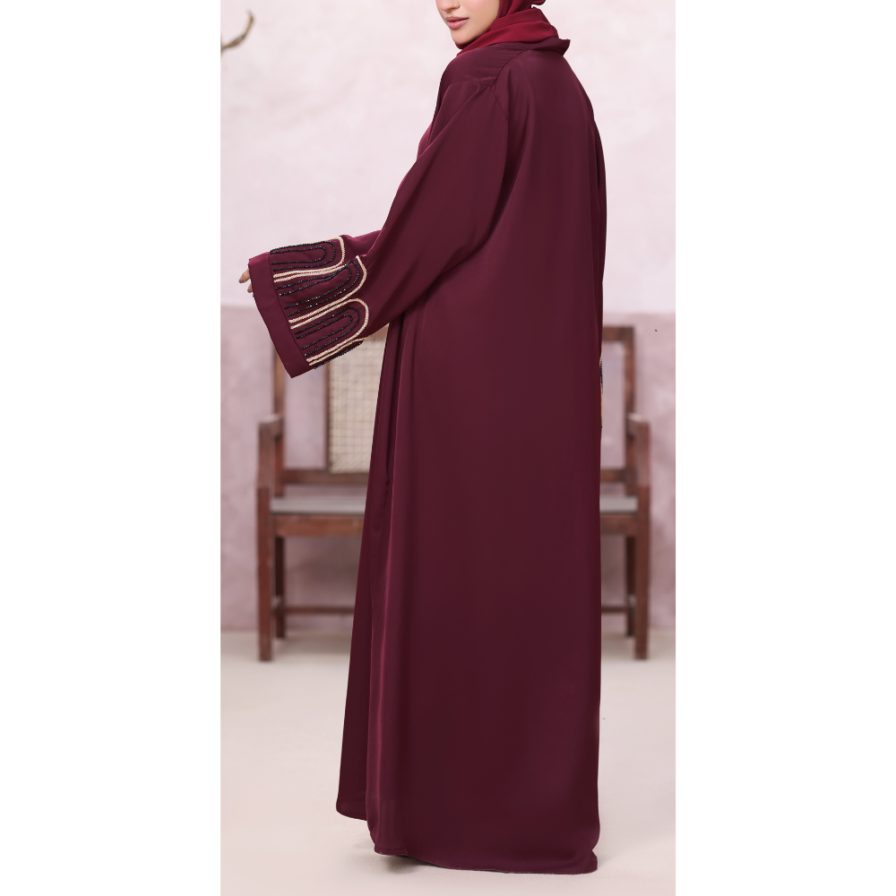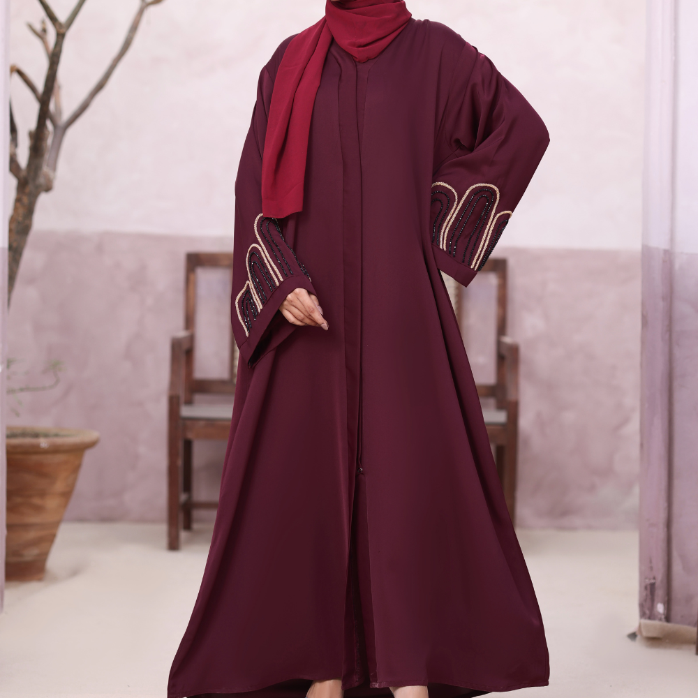 Embroidery: Beautiful sleeve embroidery featuring curved patterns with contrasting threadwork and bead detailing