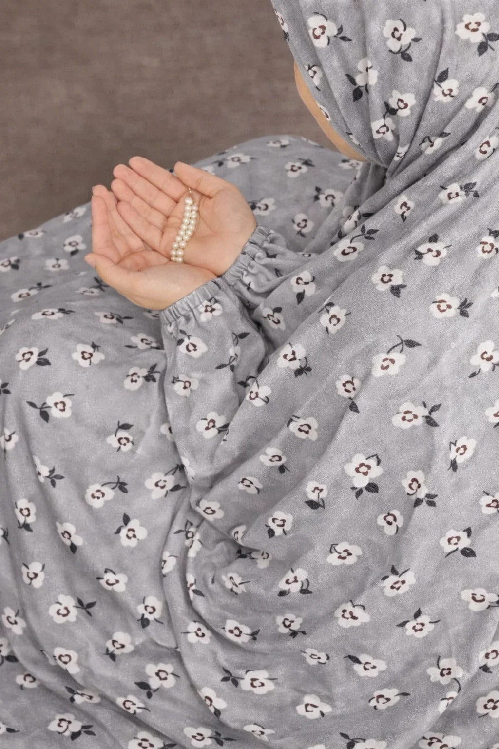 Full Coverage Namaz Chaddar - Floral Silver