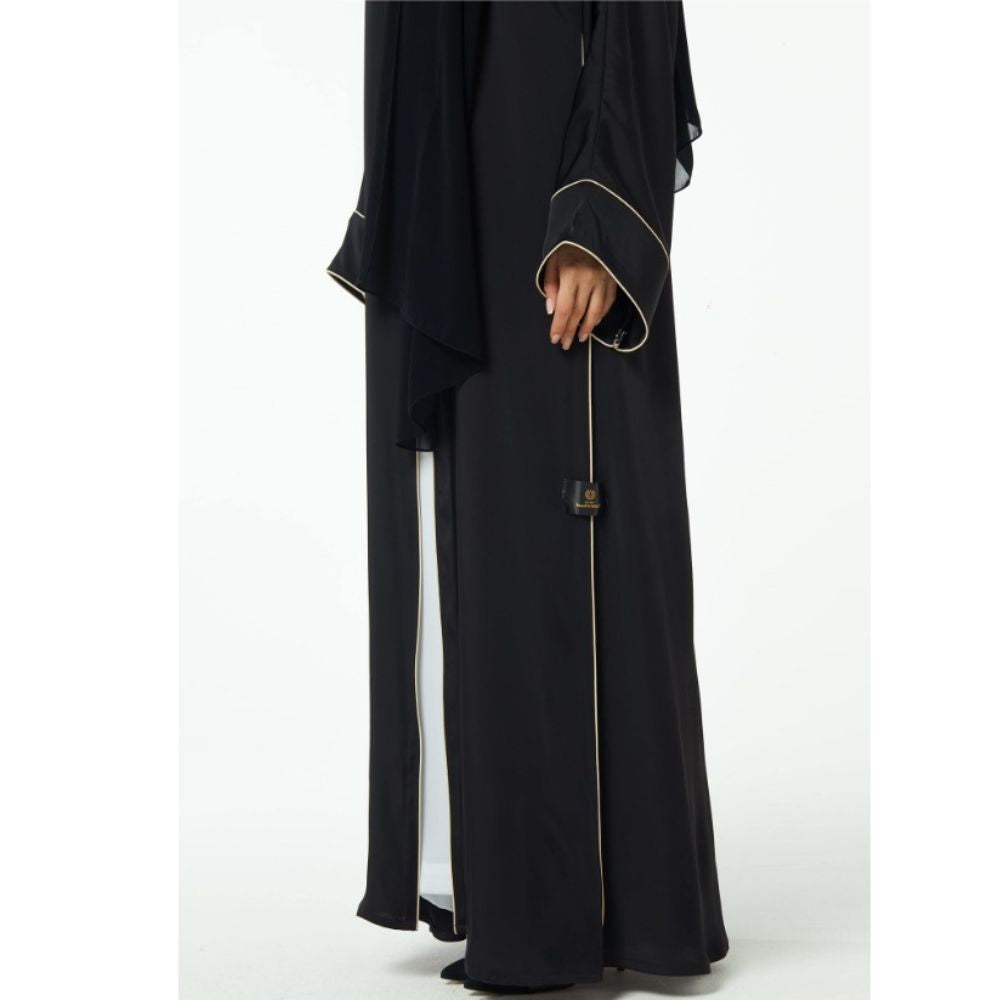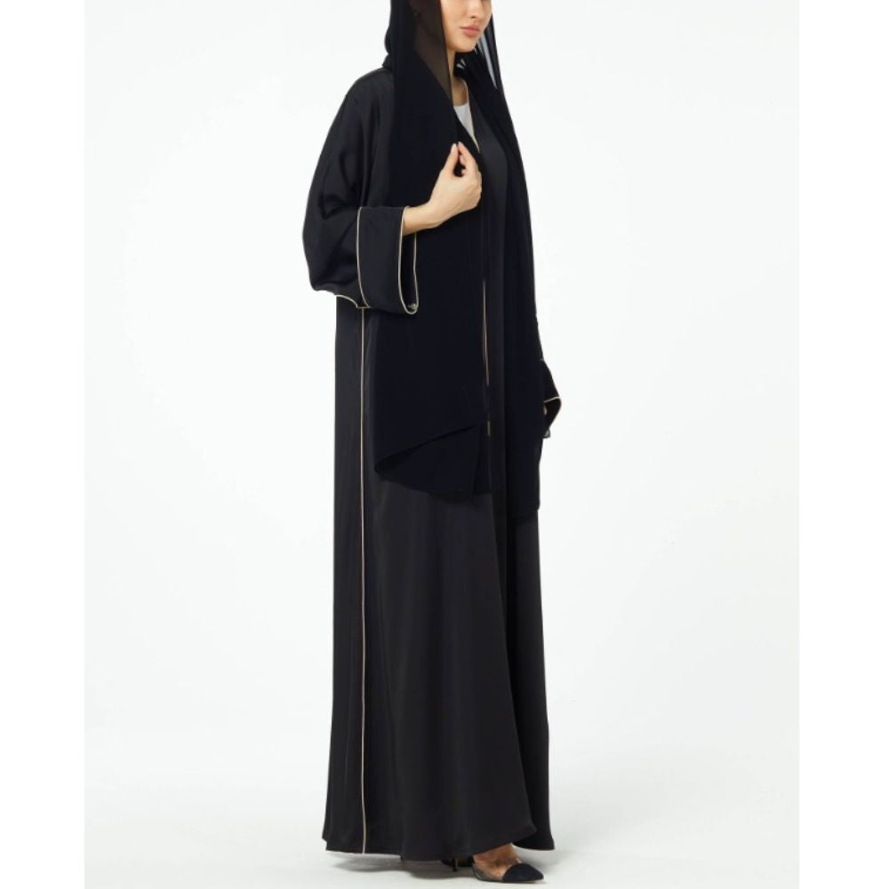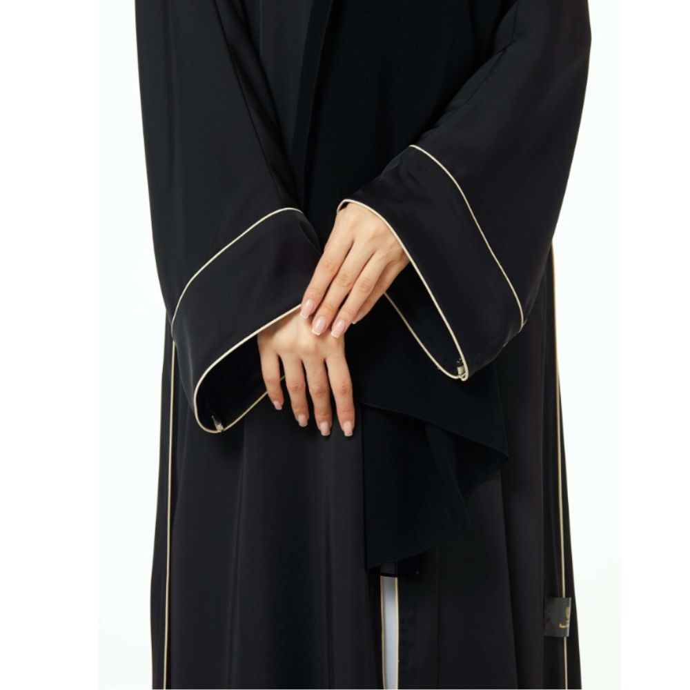 Designed for the woman who appreciates subtle luxury, The striking ivory piping traces each edge with precision, offering a refined contrast against the depth of rich black nidha fabric. Minimalist yet bold, it’s a timeless piece that speaks volumes through its details.