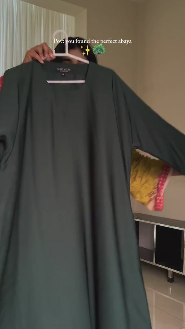A graceful statement of modest fashion, this deep emerald abaya is elevated with delicate embroidered motifs along the wide cuffs, adding just the right touch of charm and sophistication. The straight silhouette drapes effortlessly, offering both comfort and timeless appeal.